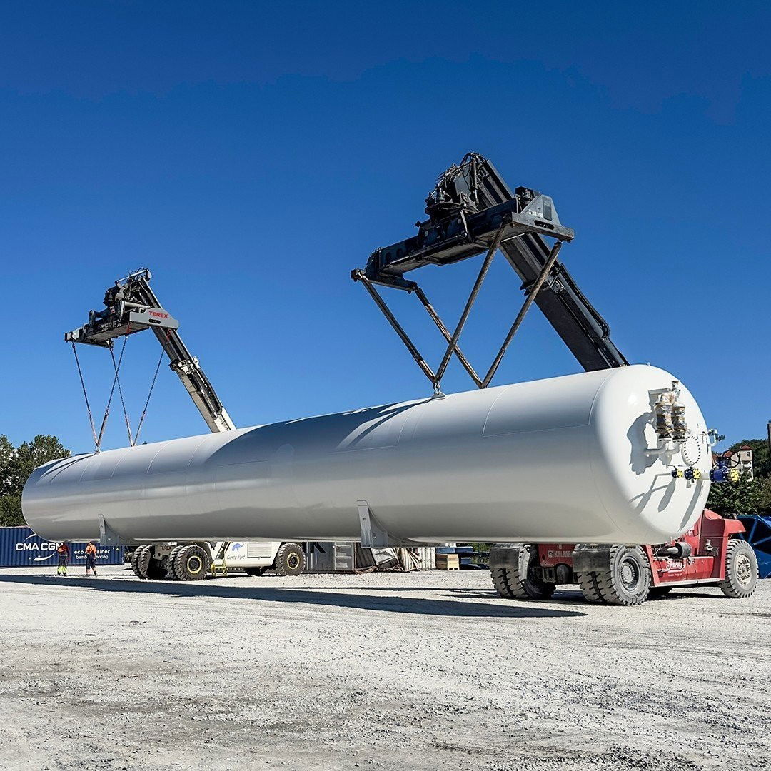 Operacja rozładowania i bezpiecznego składowania zbiorników na gaz, 67 ton i 34 metrów długości. 2 Reach Stackery i grono naszych doświadczonych operatorów. Cała operacja wykonana szybko i bezpiecznie.